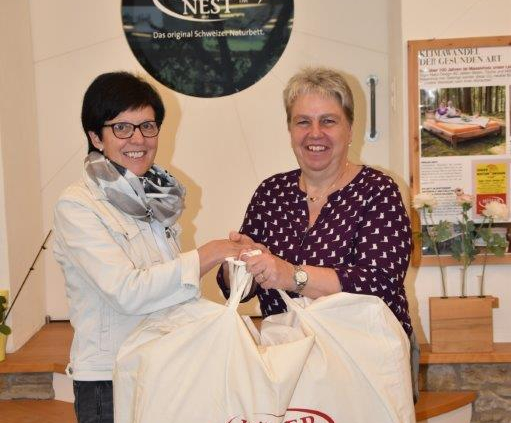 Bild: Anita Giger (rechts) gratuliert der Gewinnerin des Wettbewerbs von der GAZ25 in Hüswil; Frau Ruth Vollenwyder aus Willisau.